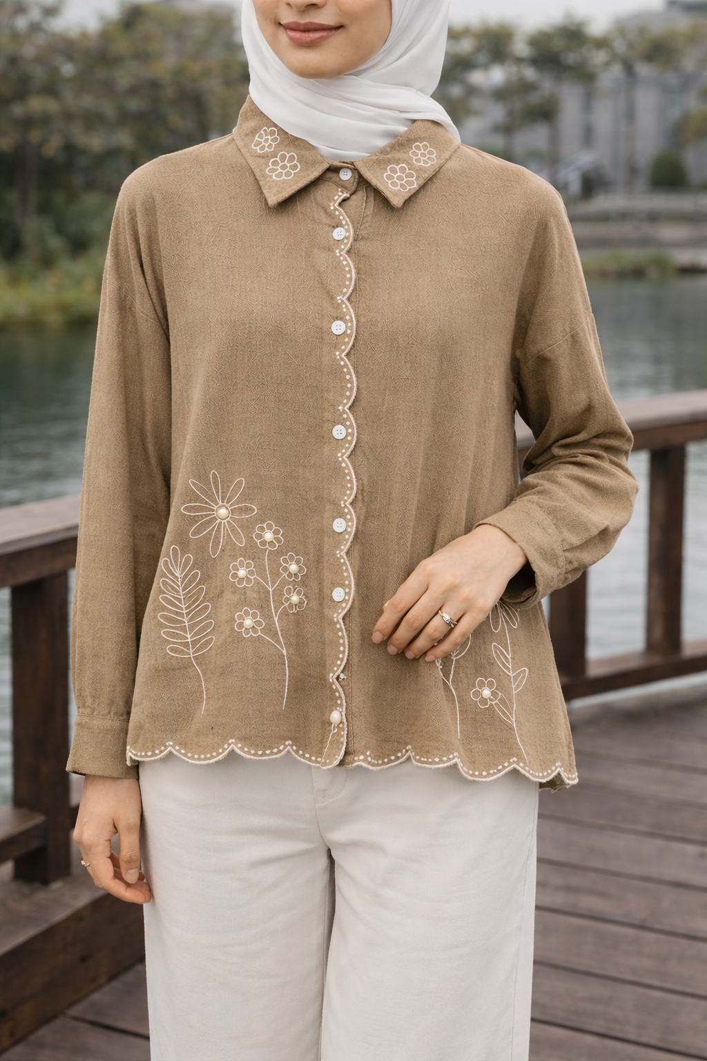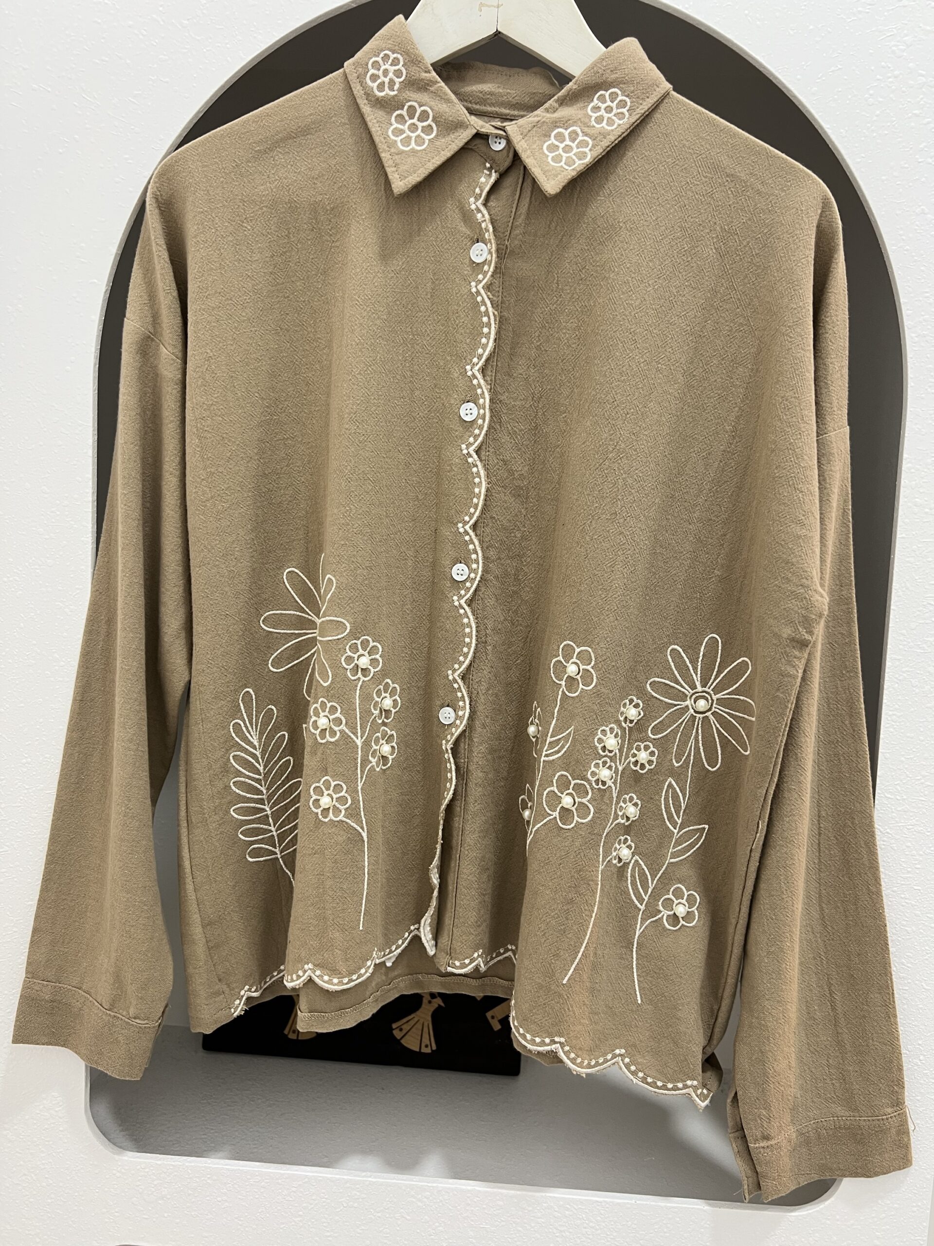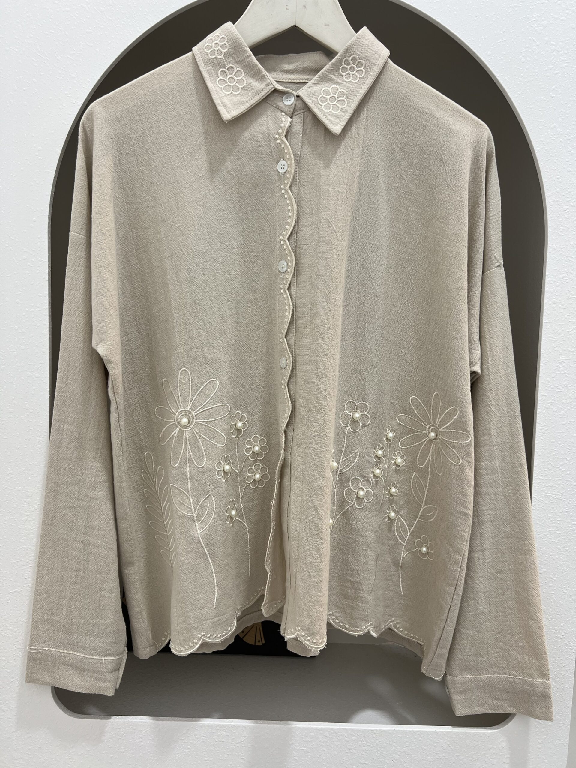 Introducing the Arabella Embroidery Linen Top – a timeless piece crafted for effortless elegance. Designed with delicate scallop embroidery along the front button line, this top adds a soft feminine touch to a classic silhouette. Made from breathable linen fabric, it’s perfect for keeping you comfortable all day long.