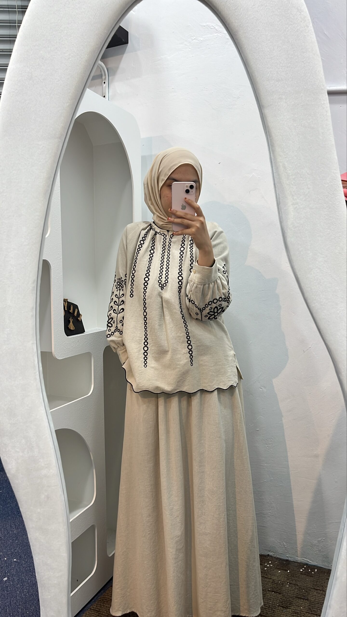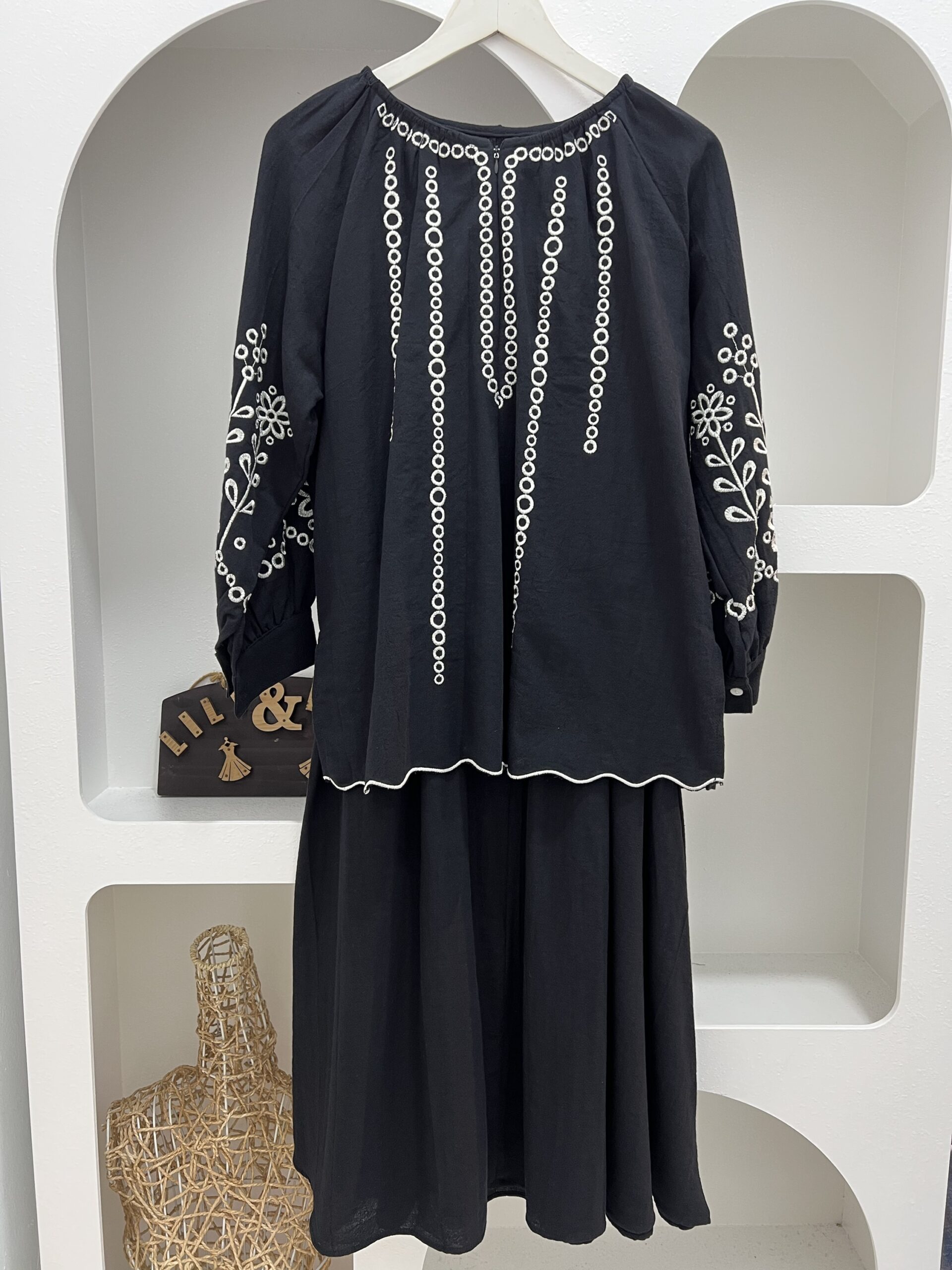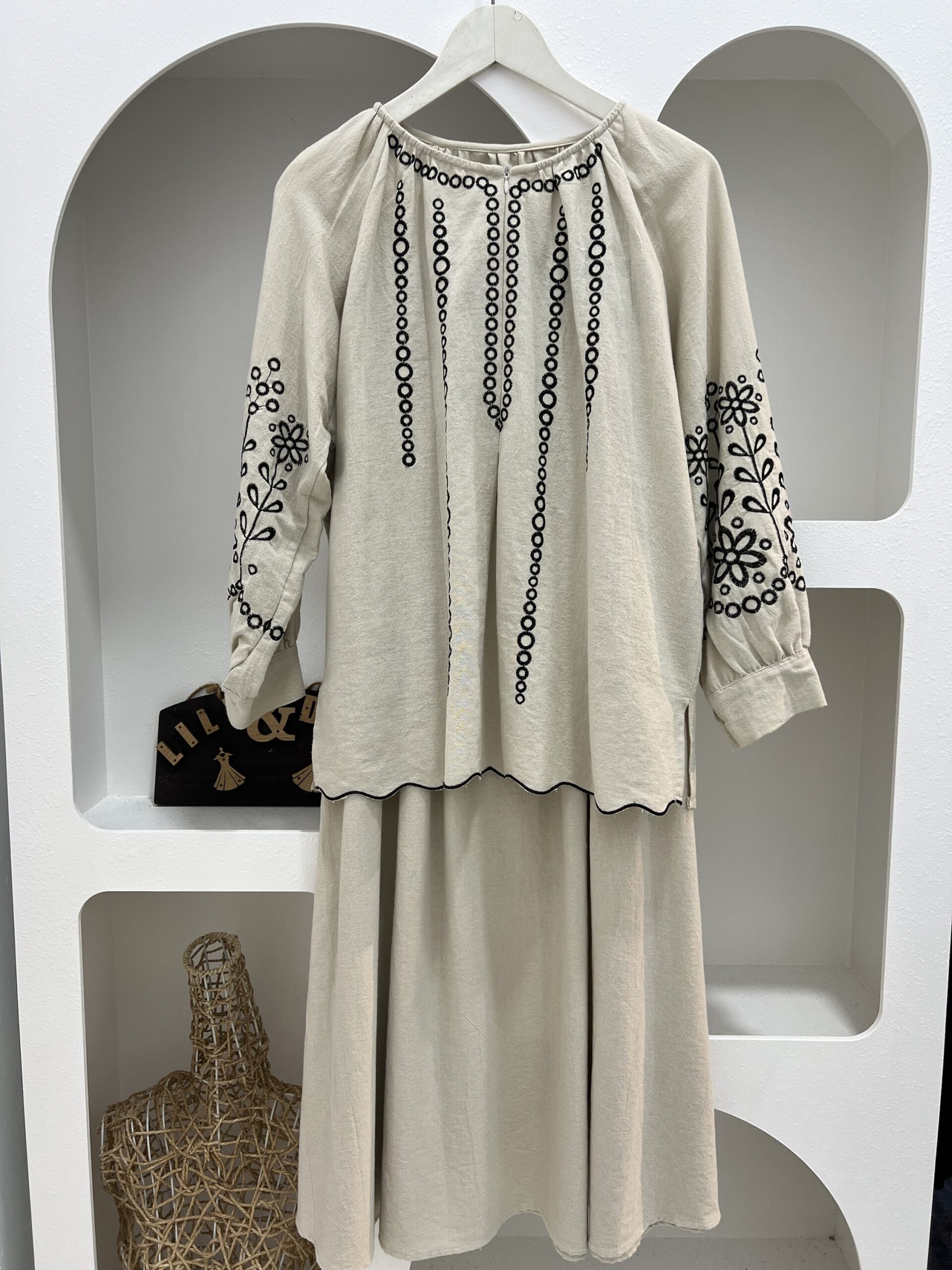 • Material: Linen blend with embroidery