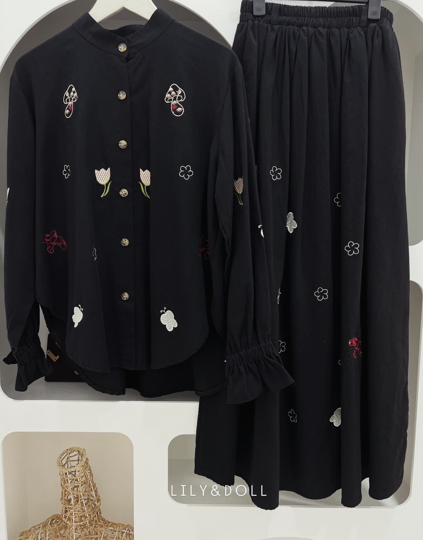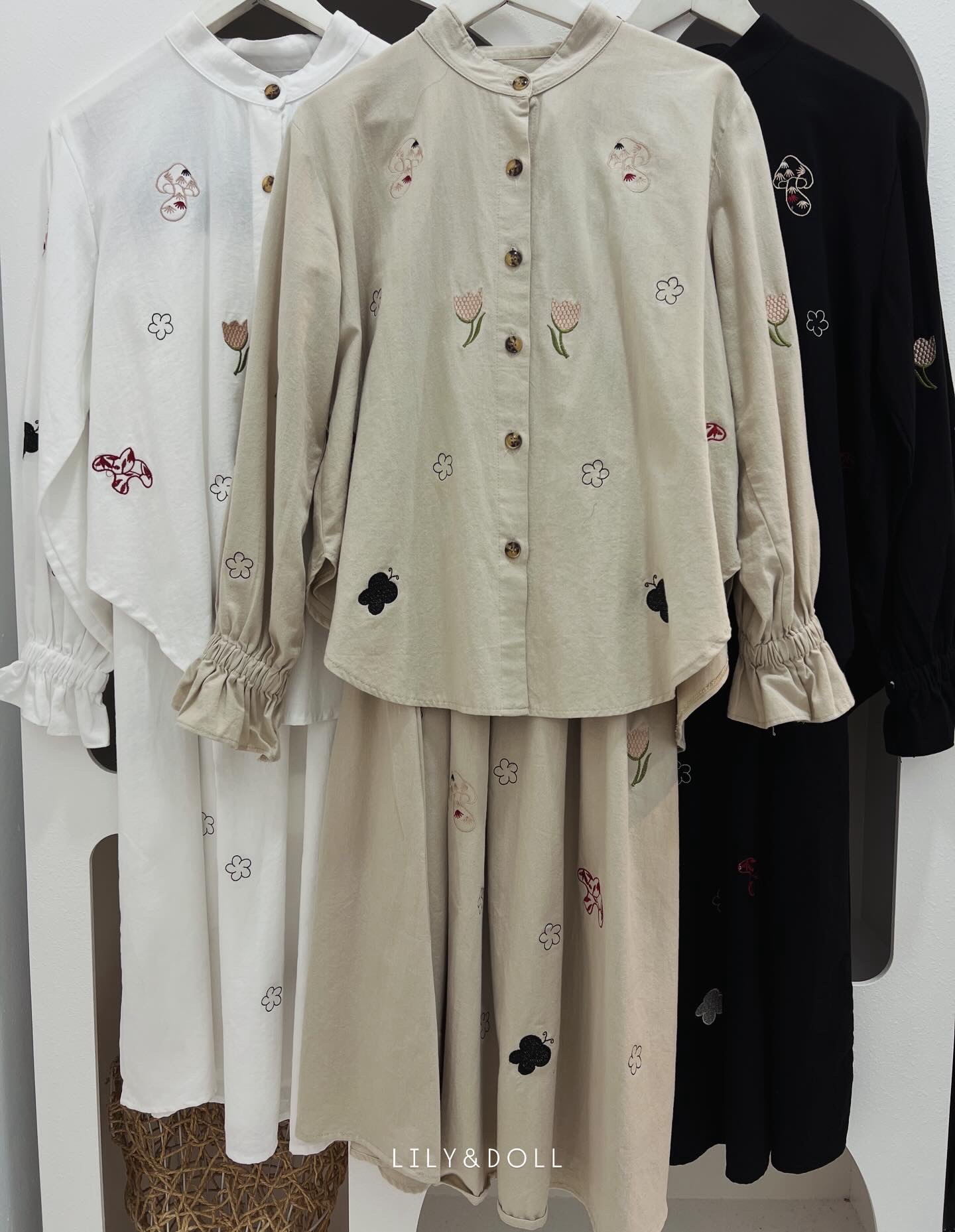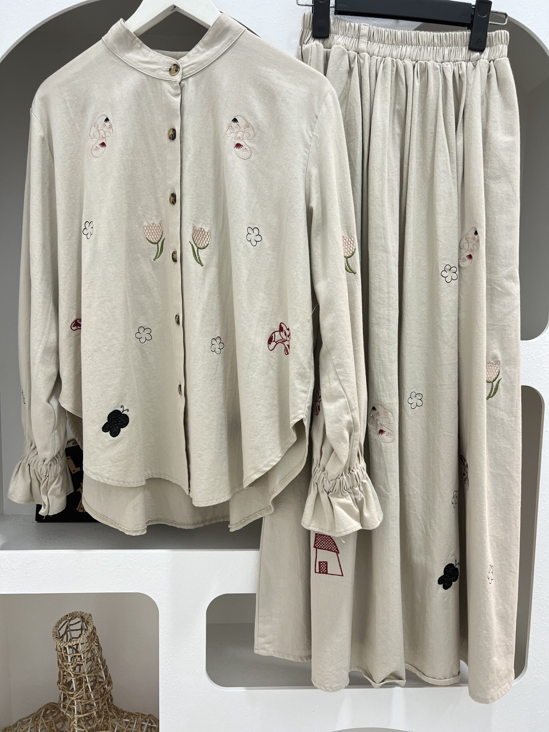 Zahra Tencel Linen Embroidery Blouse & Skirt